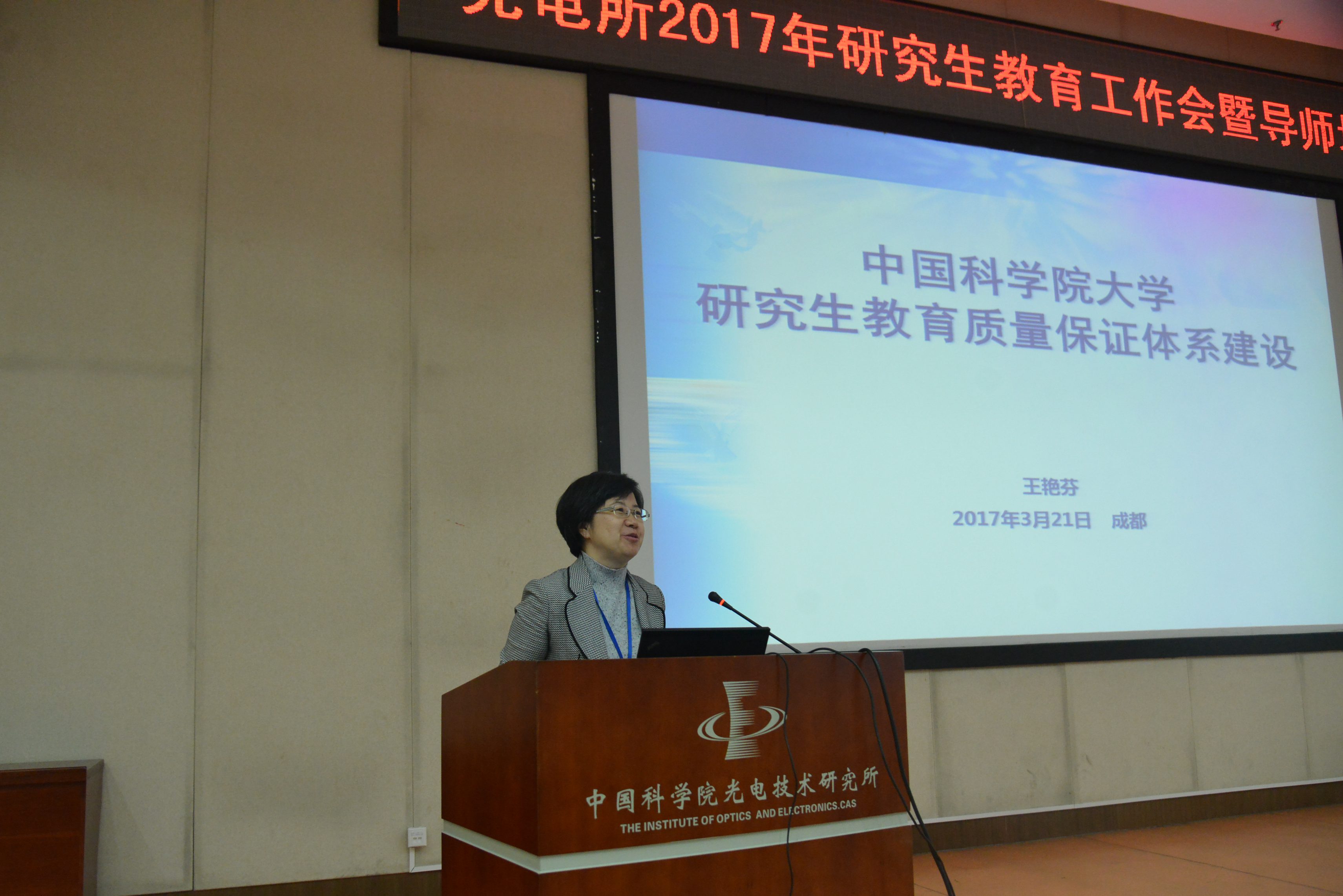 为丰富教育工作会的内容,会议专门邀请国科大副校长王艳芳教授、电子科大于军胜教授、西南民族大学社会与心理学院陈秋燕教授分别作了“国科大学位工作与导师职责”、“传道授业解惑督导、知行合一求是为师”、“学生心理健康管理与处理技巧”的报告。同时邀请所内年轻导师唐涛、唐燕、张建林、杨平交流了研究生培养心得体会,人事教育处长唐小萍宣贯了研究生培养新政策、措施、管理办法等。