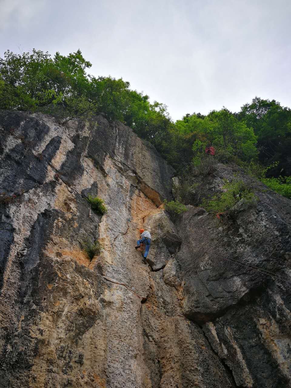 在第一天的党建带团建主题活动结束之后,第二天一早所有人员经过长途跋涉达到位于雾山的素质拓展营地开展“吃苦”之行。带队的户外教练向全体人员传授了基本且非常实用的野外求生技能,包括不同环境下的方向辨别技能、野外生火方法、系绳结实用技巧等。之后,三十余位学员来到一处峭壁之下开始了攀岩比赛,每个人都完成了对自我的一次挑战。攀岩之后已过正午,三十余位科研工作者们进行了野炊做饭环节,大家分工明确、有条不紊,在条件极其简陋的情况下做出了一道道色香味俱佳的饭菜。