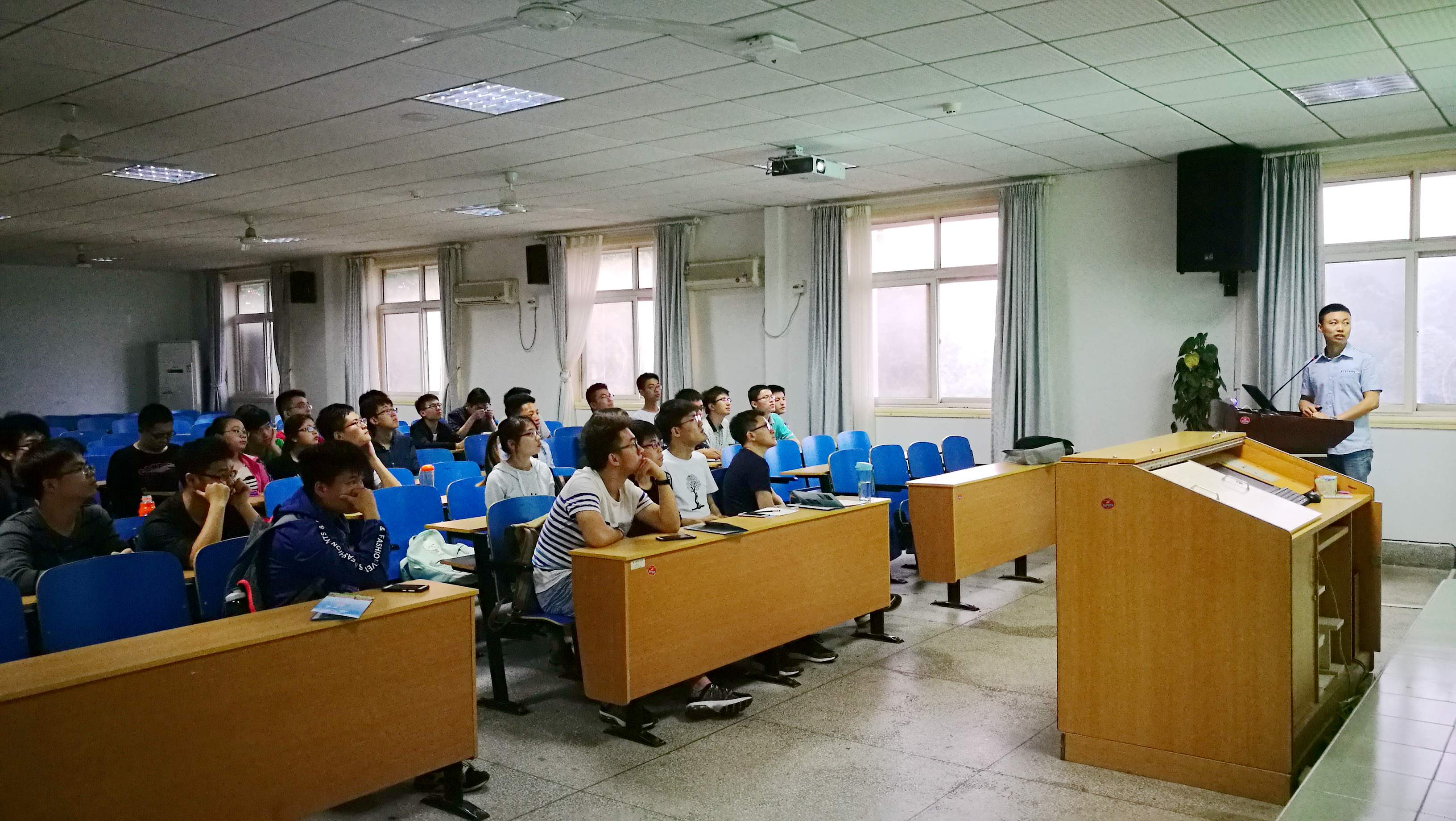 魏凯给英才班学生上了作为班主任的第一课《自适应光学——从空间到人眼》。他首先从大家熟知的作为信息和能量载体的——“光”开始讲起,介绍了光电所在大型光电望远镜、光刻、激光核聚变等方面对光的研究过程中所遇到的科学问题,即波前误差对成像质量和光束质量的影响,最终引出了光电所在解决这些问题时在国内首先开辟的自适应光学方法。随后,魏凯分别介绍了自适应光学在天文高分辨力观测以及人眼视光学波前工程上的应用和发展动态。报告最后,魏凯寄语全体学生,要在本科期间打好基础,借助英才班良好契机了解我国在光电领域的发展,开拓眼界,寻找适合自己的那一款研究方向,放飞自己的梦想。