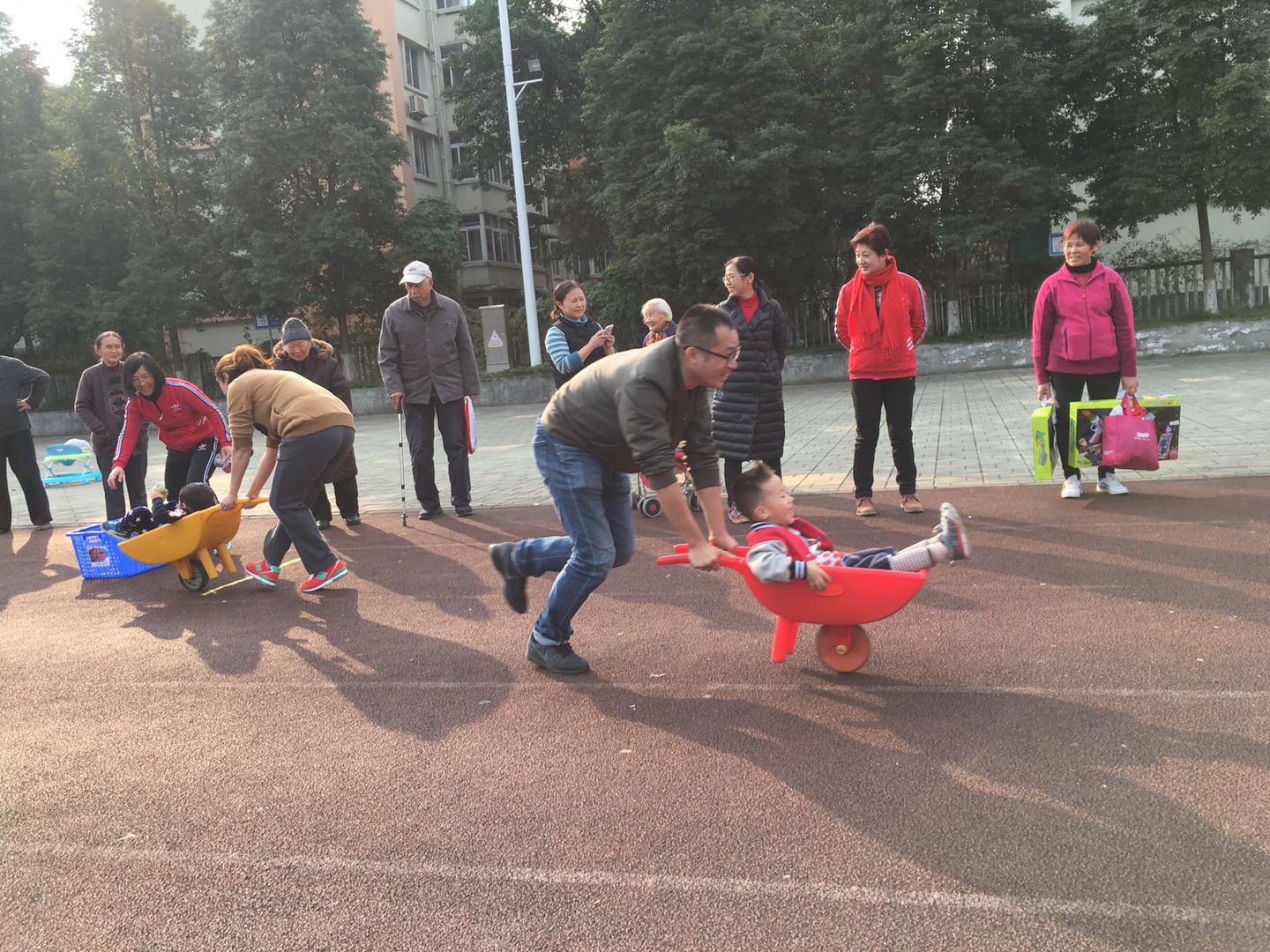 家长和孩子们个个玩的不亦乐乎,场面热火朝天。呐喊声、欢呼声此起彼伏。