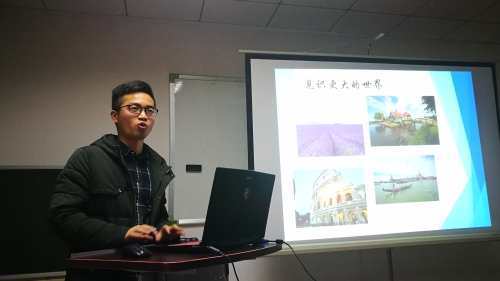 再下来,2013级谢宗良博士《出国那些事》分享了在法国蔚蓝海岸天文台一年的访学经历,讲述了被称为“科研狂魔”的法国科学院院士Antoine先生的逸闻趣事,表达了对其沉迷科研那种执着、狂热劲头的钦佩。作为足球迷,还激情分享了圆梦“伯纳乌”足球场并与足球巨星梅西在“皇马”意外相逢的惊喜。还给学弟学妹们介绍了申请出国途径、访学项目、申请技巧等。谢博士感叹到,“想成为更好的自己,就去见识更大的世界,认识更多奇妙的人,汲取更加广博的知识。你不需要别人过多的称赞,因为你知道自己有多棒”。