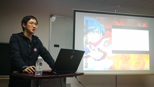 次日晚7时,下半场“百家讲坛”如约而至。自誉为动漫达人的2015级硕士生饶江浩同学带来《动漫情节渲染鉴赏》。他以动漫经典“中华小当家”等丰富的短片为例,从文学赏析的角度解读动漫情节渲染手法。他体会到,一部成功的动漫,依人情形象并借助台词、音乐等环境烘托,借景抒情,往往收画龙点睛之效,让剧情更深植人心,让故事更人情练达。