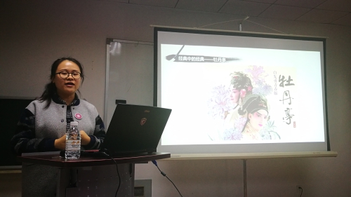 而后则是自称“努力成为非典型理工生”的2016级硕士杨可君同学,为大家带来的《情知何处起——昆曲观复》讲座,她以经典昆曲《牡丹亭》、《怜香伴》为例,分享其从优秀传统戏曲中吸取文化营养的感悟,希望光电学子多关心文化国粹的继承和弘扬,热心呼吁大家多多支持昆曲,多多欣赏美丽的昆曲。