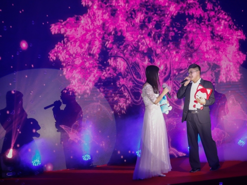 晚会最后,研究生部永远18岁的向老师与研究生杨可君倾情演唱《好人好梦》,为晚会画上圆满的句号。