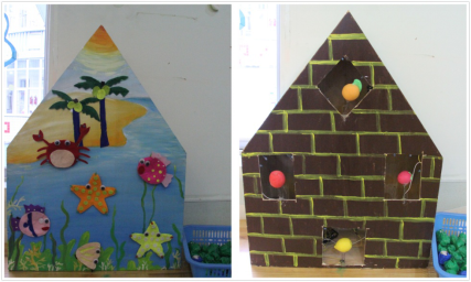 它由玩具房子、蜂鸣器和二极管、弹簧组成。它材料简单,易取,易组装;适用范围广,玩法多样且可变,幼儿可自主选择材料,进行创造性游戏,发现其他不同的玩法。