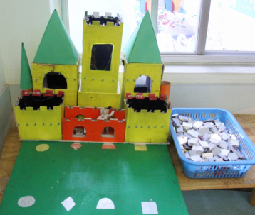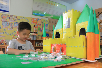 它由废旧纸箱拼成城堡,在废旧纸箱上刻镂出窗户和城墙,并用颜料给城堡木板涂上彩色构成。它将科学领域与其他领域相结合(如数学领域、建构领域等),促进幼儿的全面发展。