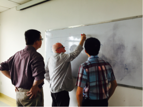 学术讨论围绕国际合作交流项目的主题“半导体激光阵列自适应相位调控研究”展开。John Marsh教授首先介绍了半导体激光阵列的基本构成、放大原理、和片上规模,并详细阐述了半导体激光阵列在功率放大过程中遇到的多路激光相位控制问题,明确了对半导体激光阵列相位调控的需求和预期。针对外方的技术需求,杨平研究员重点介绍了相位调控的基本原理、技术路线以及团队在多路激光相位调控方面取得的研究成果,并向John Marsh教授展示了自适应光学的原理实验装置以及部分数字图像处理方面的研究成果。经过深入交流,John Marsh教授对我方团队在相位调的工作印象深刻,了解到双方在半导体激光阵列自适应相位调控的研究基础具有很高的互补性与契合度,并对双方合作交流项目的前景表示乐观,积极邀请我方人员尽快访问格拉斯哥大学开展项目对接。