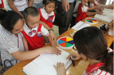 9月3日上午,小班的老师们一早来到幼儿园,为入园仪式准备。小朋友在父母的带领下,在新生纪念册上,盖上了入园第一天的手掌印,随后,在签到墙边签上了名字。