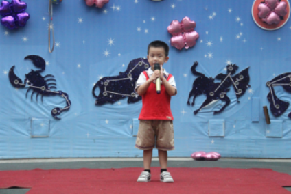 大班的柘炳辰代表幼儿园的哥哥姐姐欢迎弟弟妹妹的到来,他跟新生们讲了幼儿园很多有趣的活动和好玩的游戏,他告诉弟弟妹妹,幼儿园是一个温暖的大家庭,不用担心幼儿园的生活没有爸爸妈妈,因为会有很多老师和哥哥姐姐的帮助。
