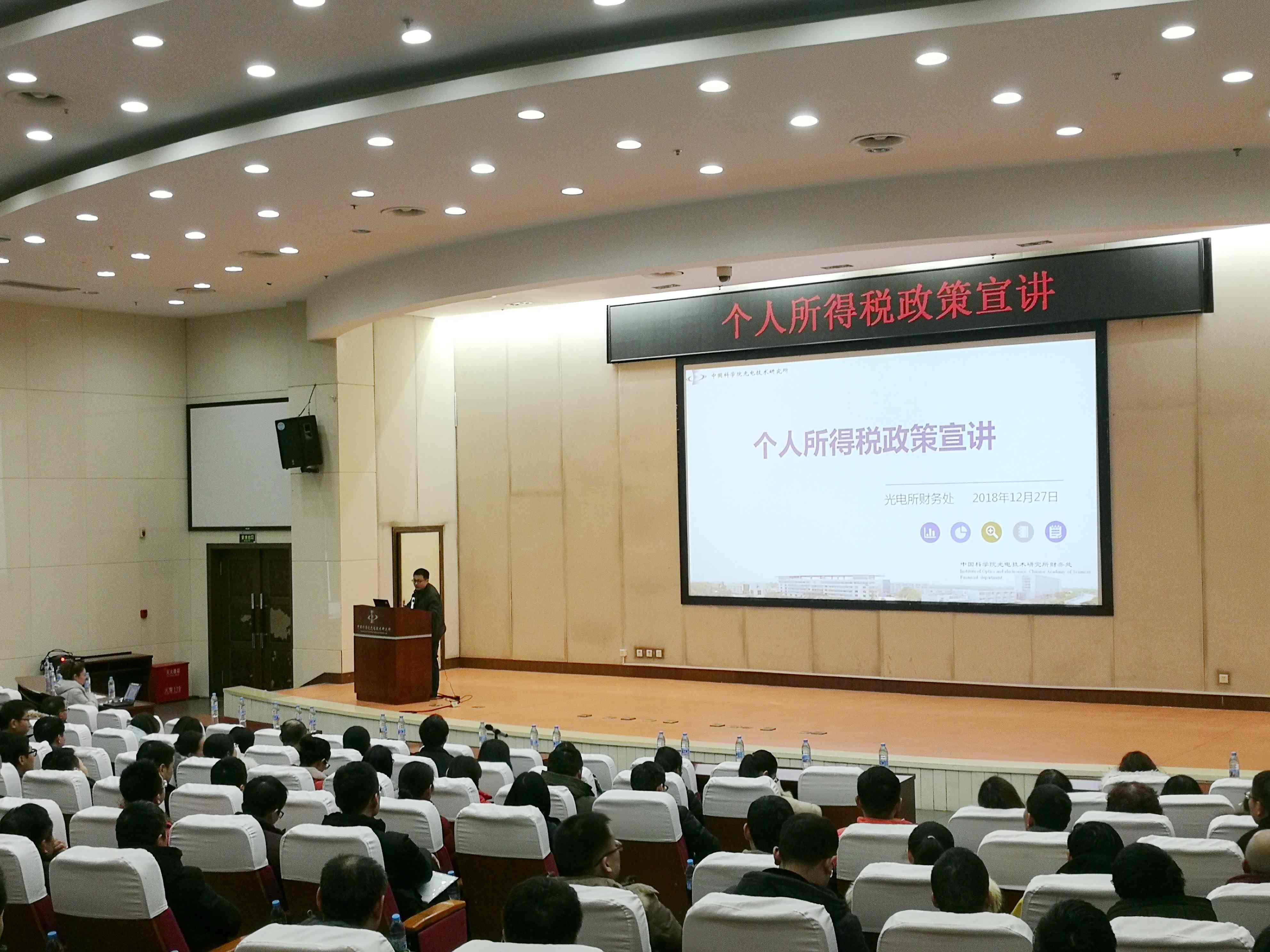 为保证2018年颁布的《中华人民共和国个人所得税法》、《个人所得税发专项扣除暂行办法》等新政策在光电所的实施落地,12月27日下午,财务处在学术报告厅举办了个人所得税政策培训宣讲会。