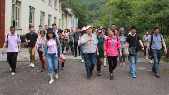 首先,在光电所原所长张礼堂的带领下重走雾山老所区,集体去“上班”,逐一走进各工作区旧址,走过老一辈光电人曾经战斗过的地方,聆听老所长的亲身讲述,感受当年艰苦岁月下光电人的奋斗精神。张礼堂从建所选址、建所纪念日的确定、各部门的发展背景、发展历程、发展过程中遇到的困难以及如何克服困难完成国家重大科研任务等方面,以讲述光电所故事、光电人故事的方式,为大家生动还原了当年老一辈光电人在雾山乡一边搞建设、一边做科研的艰苦岁月。