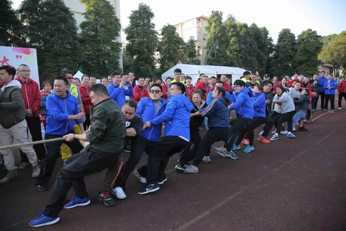 原来最激动人心的拔河比赛就要开始啦!参加比赛的成员一个个都拿出一股力拔山河气盖世的状态来积极应战~