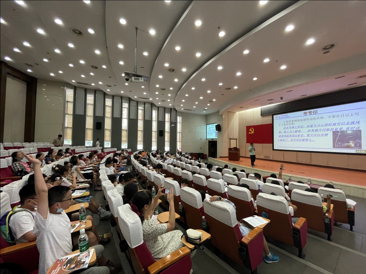 光电所科学传播领导小组办公室陈勇老师接待了洪都小学师生一行。陈勇为师生们带来了《嫦娥探月》的科普讲座,通过精彩的视频和精美的图片把嫦娥探月的全过程做了生动的讲解。他分别从月球、人类探月历程、嫦娥一——五号等七个方面把与嫦娥探月相关的科学知识娓娓道来。同学们在陈老师的引导下,一步一步解开嫦娥探月的神秘面纱,走进航天知识的海洋。现场气氛异常热烈,同学们积极回答陈老师的提问,也主动向陈老师提出自己的问题。陈老师认真地回答同学们的提问,同时还向同学们提出了殷切的希望,希望同学们用科学的方法思考和解决问题,长大后投身科学研究事业。
