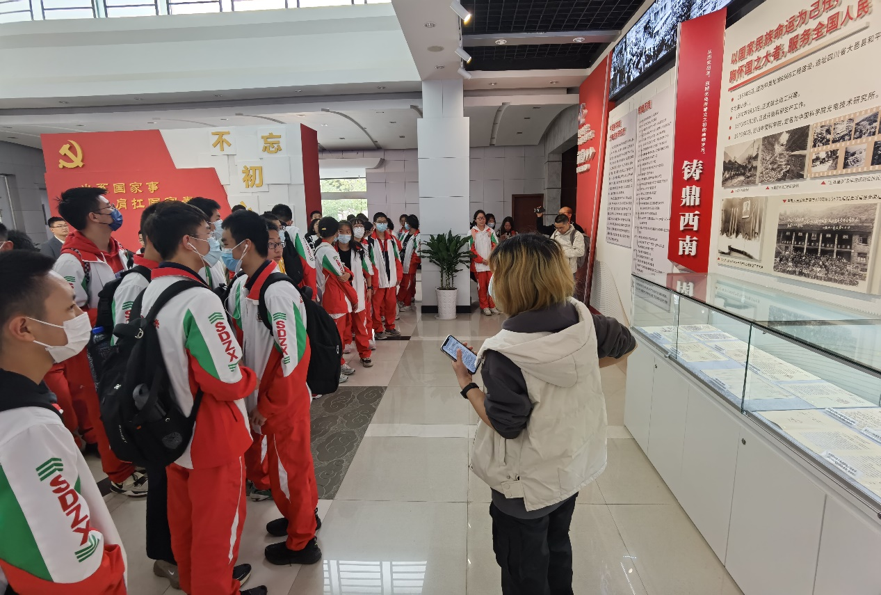 在参观光电所科学家精神教育基地环节,科普协会崔力娜和唐鸿洋带领同学们重温了光电所建所、科研的发展史,声情并茂的讲解结合丰富多彩的展板资料、书信手稿等,让同学们了解到三线精神、778精神、光电精神。在介绍光电所取得的各项成果时,结合中学所学知识设置问答环节,与同学们互动交流,不仅启发同学们的学习热情,也为同学们的生涯规划提供了有力帮助。