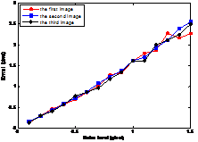 仿真实验和实际实验验证了所提出算法的正确性和鲁棒性。图1是仿真棋盘格角点,图2是仿真实验误差统计,图3是实际棋盘格图像,图4是提出的标定算法和传统张正友方法的重投影误差对比。