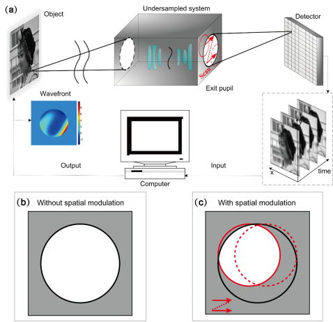 该研究首次提出叠层空间调制相位差的概念,将相位差法推广至欠采样系统。利用小孔光阑对大口径光瞳面进行空间限制,使采集的子图像满足采样定律。小孔在扫描过程中相互交叠,交叠部分提供相同相位信息,非交叠部分提供相位差异。这样由小孔叠层扫描得到的一组子图像都是过采样的,在算法探测过程中不会出现错误的频率信息,从而极大提高了相位差法对欠采样系统的测量精度。