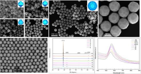 中国科学院光电技术研究所光学轻量化与新材料技术中心在基于表面等离子体共振的贵金属纳米超晶材料研究上取得新进展:通过一步化学还原法制备了从低晶面八面体到高晶面三十二面体的多种规则金纳米超晶结构形貌衍变,并深入研究了其优异的表面等离子体共振吸收特性。相关研究成果已发表在近期的英国皇家化学会期刊《Journal of Materials Chemistry C》上(J. Mater. Chem. C, 2017,5, 645. 影响因子:5.1, 中科院一区杂志)。