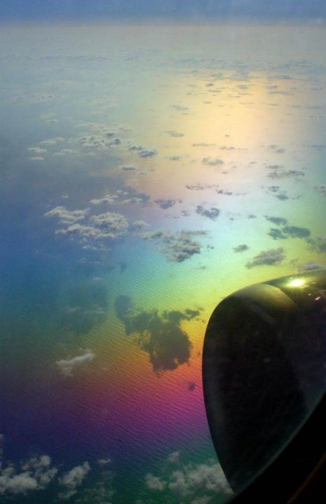 很多人看到这幅照片的第一反应是,“一定是PS的”。但实际上,这并不是依靠电脑特效才能制作出的“假照片”,而是可以实实在在拍摄到的自然现象。不少网友在乘坐飞机的过程中,也都曾经拍摄到类似的壮丽景象,如下图。