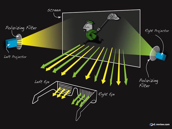我们在电影院看3D电影时,工作人员会给我们一副“大墨镜”,其实就是偏振镜。左右两片镜片允许通过的光的偏振方向恰好相互垂直,如此一来,左右眼就可以分别看到不同的图像,产生强烈的立体感了。