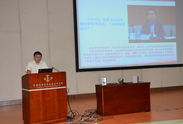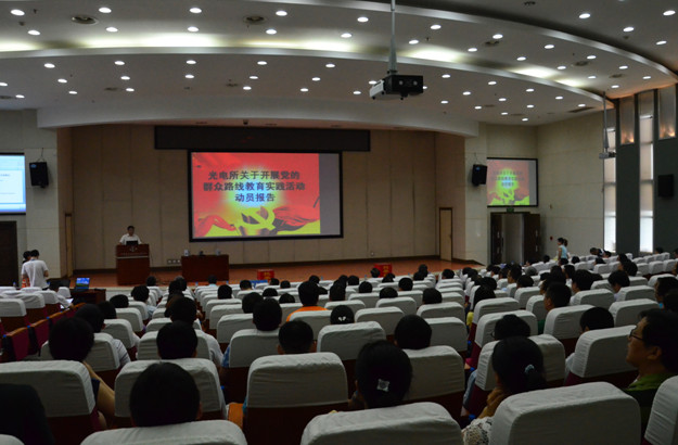 8月28日,光电所组织全所党员干部在学术报告厅召开了党的群众路线教育实践活动动员部署大会,正式启动研究所教育实践活动各项工作。所领导班子成员,党委委员、纪委委员,中层管理干部,副高及以上专业技术人员,党支部书记、委员,民主党派代表,职代会主席团代表,离退休职工代表,学生代表等140余人参加了会议。