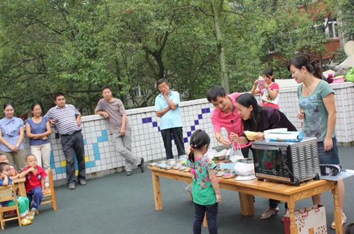 各班开展了烤饼干、扎花灯、品月饼、亲子小游戏等丰富多彩的活动,力求让孩子和家长感受到幼儿园这个大家庭的温暖与快乐。家长们也积极参与,他们走进课堂当起了幼儿园的老师,为孩子们讲解中秋的来历、传说与习俗,准备充分、讲话幽默风趣,一点都不亚于专业的幼儿园老师;从家里带来烘烤工具,为孩子们亲自示范饼干的做法,打黄油、揉面、压型步步紧扣。孩子们听得认真,玩得也不亦乐乎,在快乐轻松的氛围中,体会到传统节日的魅力。