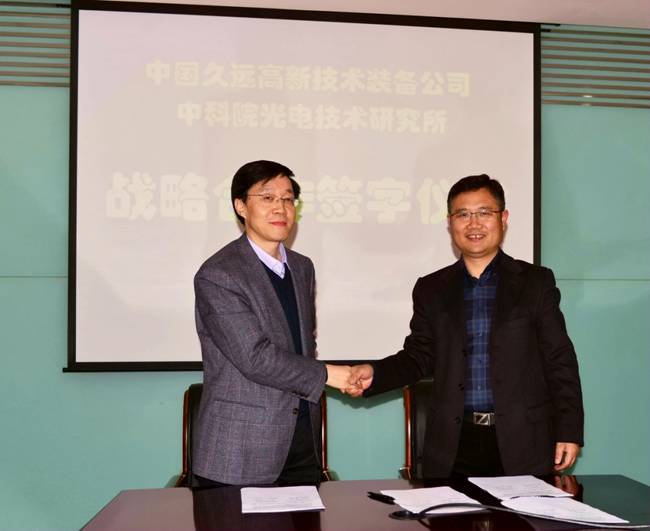 3月7日,中国久远高新技术装备公司与中科院光电技术研究所签署战略合作框架协议。中国久远高新技术装备公司总经理黄辉、光电所党委书记、常务副所长杨虎代表双方在协议书上签字。中国久远高新技术装备公司与光电所相关领导出席了签字仪式。