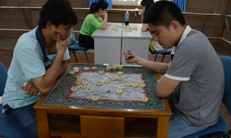 在比赛场地上,生活部的工作人员也动了脑筋。五子棋和象棋需要安静,安排在一个房间;2048和Flappy Bird是一个集体活动,安排在大厅;麻将和扑克牌安排在另外2个房间。五子棋最先开始,大家都遵守比赛纪律,保持这种头脑风暴需要的安静环境。牌类比赛随后展开,大家高昂的激情将活动推向了高潮。象棋比赛斗智斗勇,戴晓霖和李文宗二人更是杀得难分难解,戴晓霖耗时一个半小时才2:1险胜晋级。
