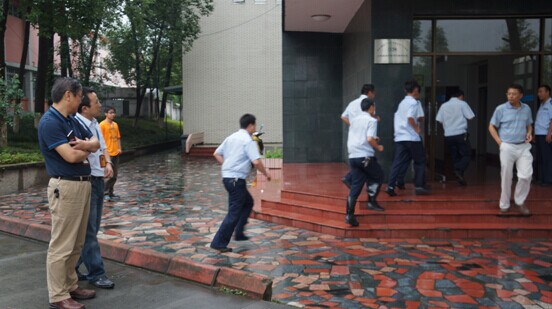 接到报警后,安保办立即组织安保人员携带灭火器材赶赴现场。到达着火点后,安保人员根据消防预案分成三组,一组与五室职工一起,使用灭火器对火源进行压制,另一组迅速跑到室内消防栓位置,连接好水枪、水带、消防栓出水口,打开消防栓,全力向火源喷射,其余安保人员在向着火点输送灭火器材的同时,加强对现场的警戒,指挥无关人员疏散到安全地带,保障消防通道畅通。经过十多分钟的奋力扑救,火情得到控制,没有造成更大的财产损失。由于人员疏散及时,也没有发生人员伤亡的情况。这是6月24日上午,安保办和五室联合进行消防演练的一组场景。