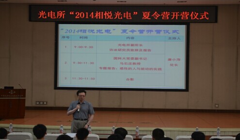 7月22日,由光电所举办的“2014相悦光电”科技夏令营正式开营,来自清华大学、中国科技大学、浙江大学、武汉大学等“985”、“211”高校的76位优秀大学生走进我所,在未来7天的时间内将参加丰富多彩的夏令营活动,亲身感受科研的魅力。
