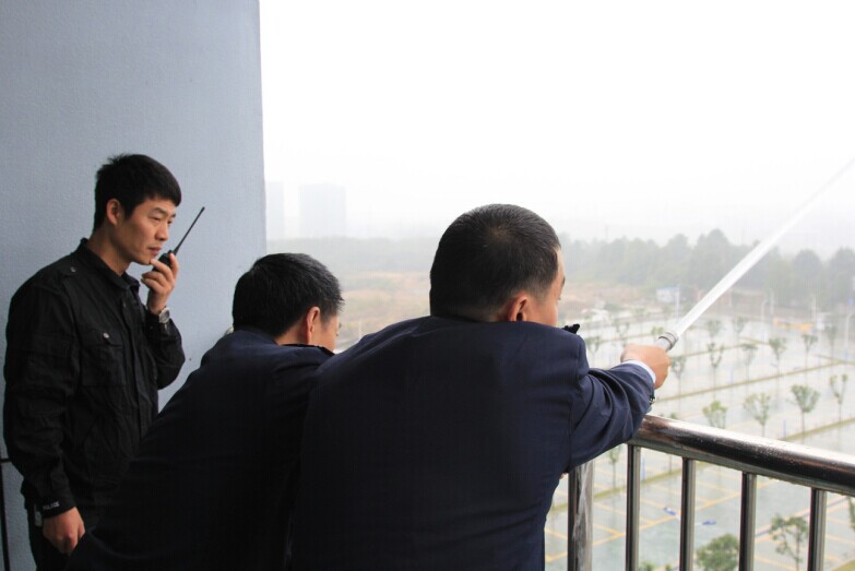 此次演练是根据“11·9消防宣传日”整体要求,为检验光束楼自动消防报警系统的有效性和安保人员扑救初期火灾能力而组织。上午九点半,参演人员相继到达光束楼各岗位,做好各项准备工作。十点零五分演练开始,安保人员在五楼触发烟雾报警器,各楼层响起刺耳的警报声。由消防维保公司专业人员和我所安保人员组成的系统操作组,在消防主机控制室实时监控系统运行情况;由驻所保安队员组成的现场试验组分别在五楼和八楼,使用室内消火栓进行出水演练以及水压测试;由物业公司动力工程部组成的应急保障组,在设备层密切关注电力系统、水系统等运行情况。整个过程面向实战、分工明确、紧张有序,对设备及人员都是一次难得的操练机会。