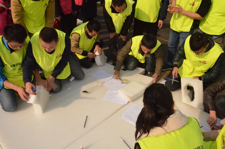 本次拓展活动以“激情飞扬—技术创新”为主题,活动也安排设计了颇具我所科研特色的经纬仪制作竞技环节。活动伊始,全体成员被分成红、绿、蓝、粉、紫五个队伍,每队推选出各自的队长并提出创意队名和口号。一个个响亮的队名充分鼓舞了队员们的士气和参与活动的热情。