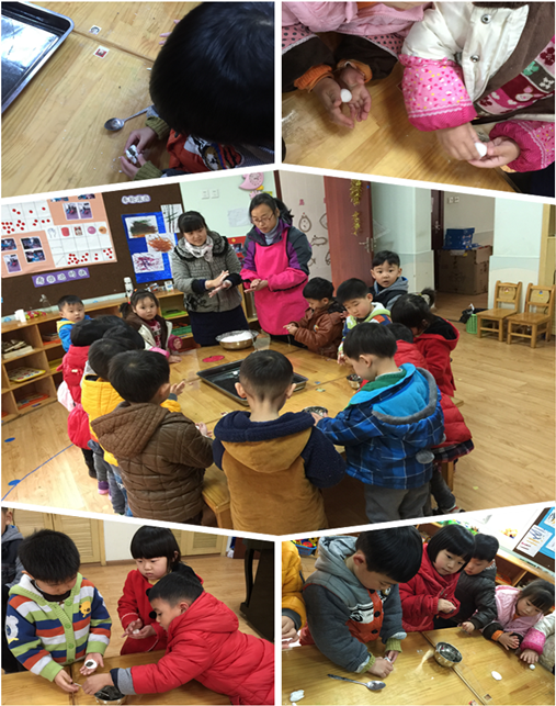 节日当天,全园师生欢聚一堂,首先通过观看视频、合唱歌曲等多种形式,帮助孩子们了解元宵节的时间、由来和相关风俗,增强孩子们对中国传统节日的认识。随后师生们开始共同动手包汤圆。孩子们兴致高涨,通过学习包出了不完全标准但却凝结了自己辛苦劳动的汤圆,收获了极大的成就感。大家一起煮汤圆,吃汤圆,度过了一个其乐融融而又充满意义的元宵节。