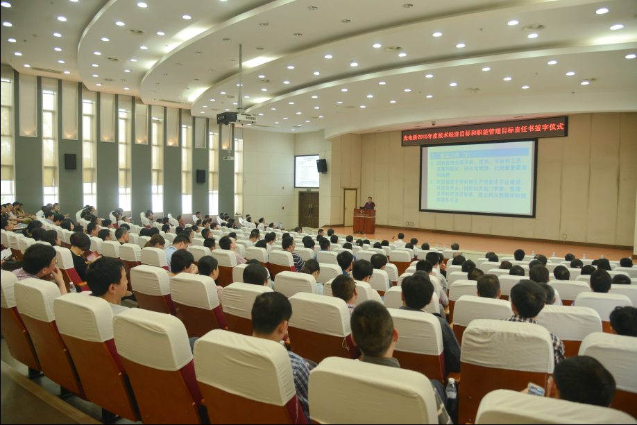 4月30日上午,我所在学术报告厅举行2015年度技术经济目标和职能管理目标责任书签字仪式。所领导班子成员、全所副研以上科研人员及机关全体职工参加仪式。签字仪式由副所长饶长辉主持。
