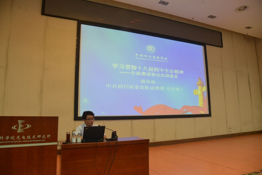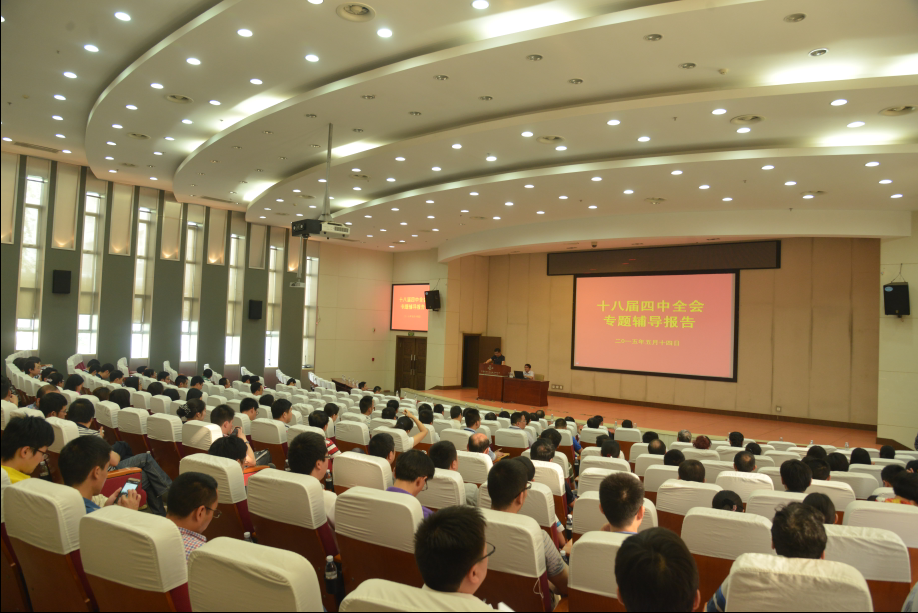 5月14日,我所组织召开学习贯彻十八届四中全会精神专题辅导报告会。会议由党委书记、常务副所长杨虎主持,全所中层干部、副研及以上科研人员及职工代表200余人参加了学习。