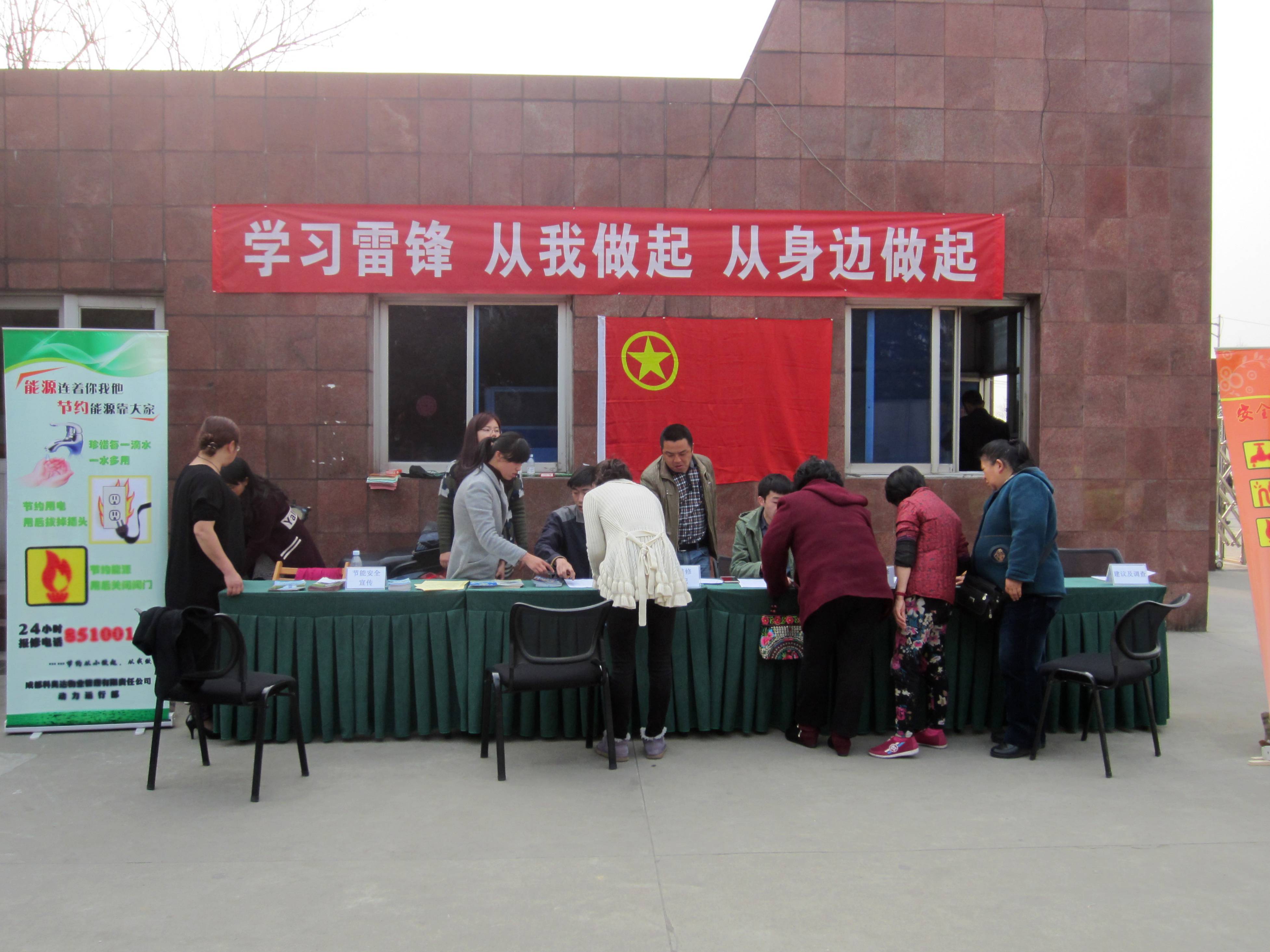 本次活动以“学习雷锋,从我做起,从身边做起”为主题,在老大门设置服务点,服务内容包括水电维修、水气维修、能源安全使用与节能、建议及调查四个方面。公司人员积极主动向往来的职工及家属宣讲能源正确使用方法,详细解答有关水、电、气维修方面的问题,针对全所家属区有水、电、气损坏的房号进行登记,并进行免费上门维修服务。