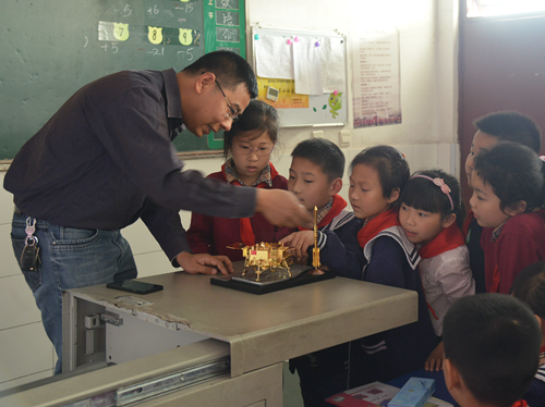 4月22日,在首个“中国航天日”来临之际,光电所科学传播领导小组办公室副主任陈勇和研究生科普协会成员共同走进双流区实验小学的课堂,为现场学生带来了一场精彩的“嫦娥探月工程”课程。陈勇以一篇小学生对月球幻想的日记开篇,把学生们引入对月球无限的暇思之中。他用深入浅出的语言详细讲解了月球的概述,人类探月历程,我国嫦娥一号、二号、三号、五号探月工程等四方面的内容。他把嫦娥探测月壤特性的科学目标比喻成嫦娥给月球打B超,打CT,使同学们对嫦娥的科研目标有了非常直观的认识和了解。他还为同学们播放了嫦娥探月动画视频和记录嫦娥探月实况的短片,通过难得一见的影像资料,展示了嫦娥探月工程中一幕幕珍贵难忘的画面。课堂上同学们积极主动的回答问题和提问,现场气氛热烈,精彩的授课赢得了同学们的阵阵掌声。研究生科普协会成员还为同学们展示了嫦娥三号的实体模型,并与同学亲切互动,将本次活动推向高潮。