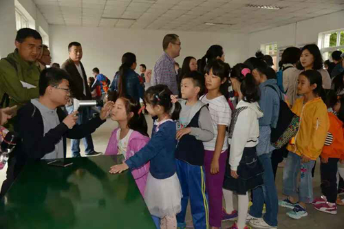 在科研展厅,科普协会成员和科普志愿者从光电所的发展历史到最新的科研成果等进行了热情洋溢的讲解,当谈到光电所在国际上首次获取太阳大气7波段层析成像等重要科研成果的时候,现场都会爆发出热烈的掌声。在微细加工光学技术国家重点实验室展厅,讲解人员通过激光笔把纳米光刻下的美丽图案投射到墙壁上时,都会听到参观者的阵阵惊叹声。当参观者通过显微镜观察到相当于发丝百分之一的微米光刻线条和发丝的对比图案时,都啧啧称奇:“这么小的线条是怎么刻上去的呢?”