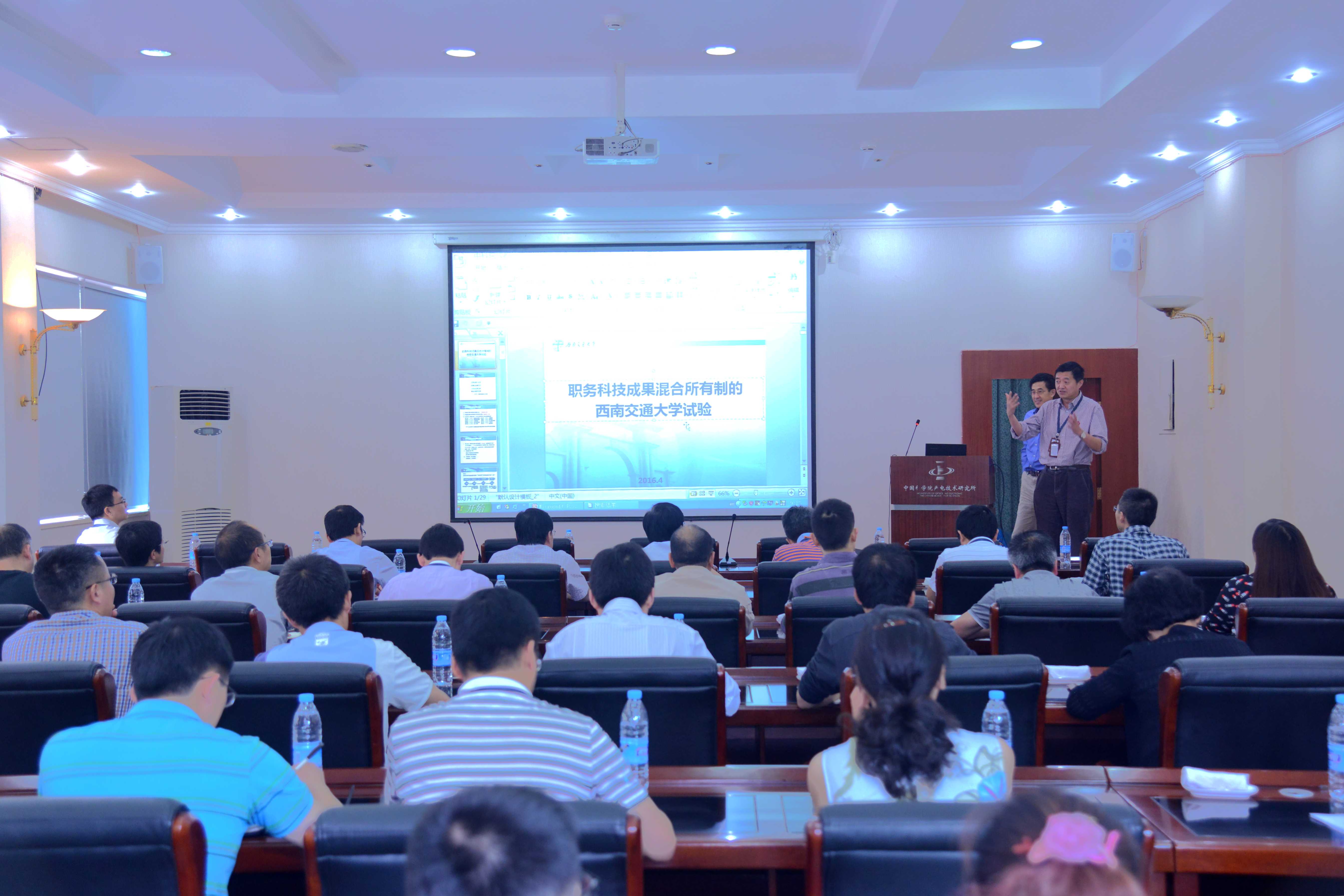 康凯宁教授从高校科技成果转化现状、科技成果转化的形势、西南科技大学在科技成果混合所有制改革上的探索等几个方面进行了介绍,同时结合国家和地方政府有关政策规定,利用西南交通大学科技园典型案例,深入浅出地介绍了在成果转化方面的成功经验。