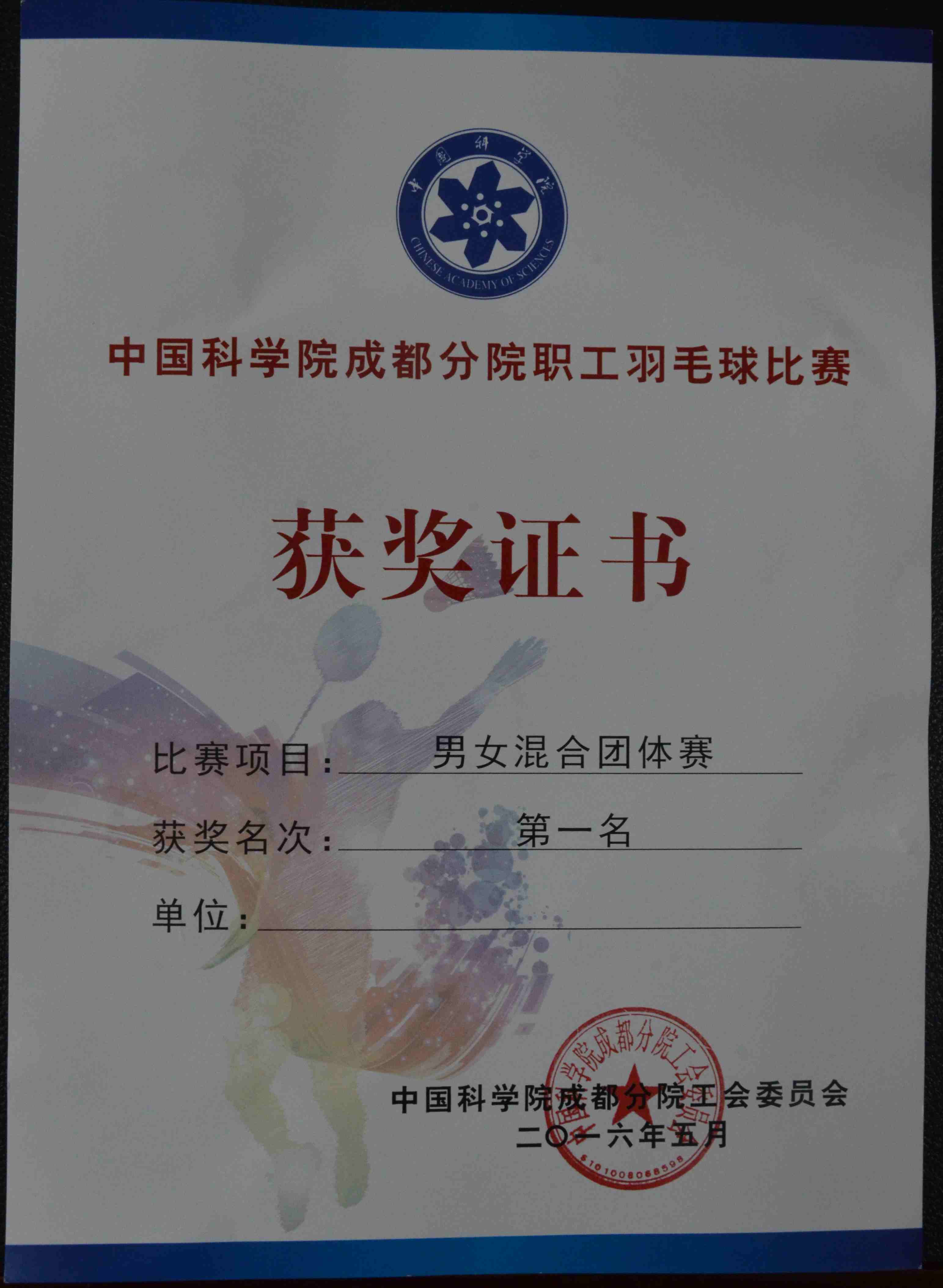 5月19日至20日,光电所组队参加中科院成都分院职工羽毛球比赛。来自院属成都、重庆地区共9个单位13支代表队100多名运动员同场竞技。经过3天的激烈比赛,在单打项目中光电所职工田梦懿获得女子单打冠军、张程程获得女子单打亚军、廖祥林获得男子单打亚军、邓继江获得男子单打季军。在团体比赛中光电所荣获混合团体冠军。