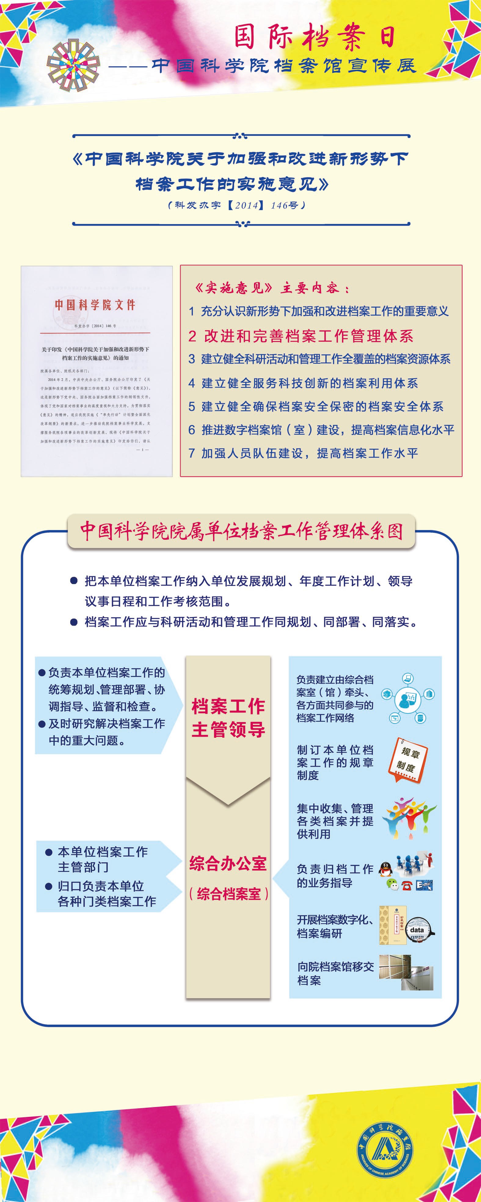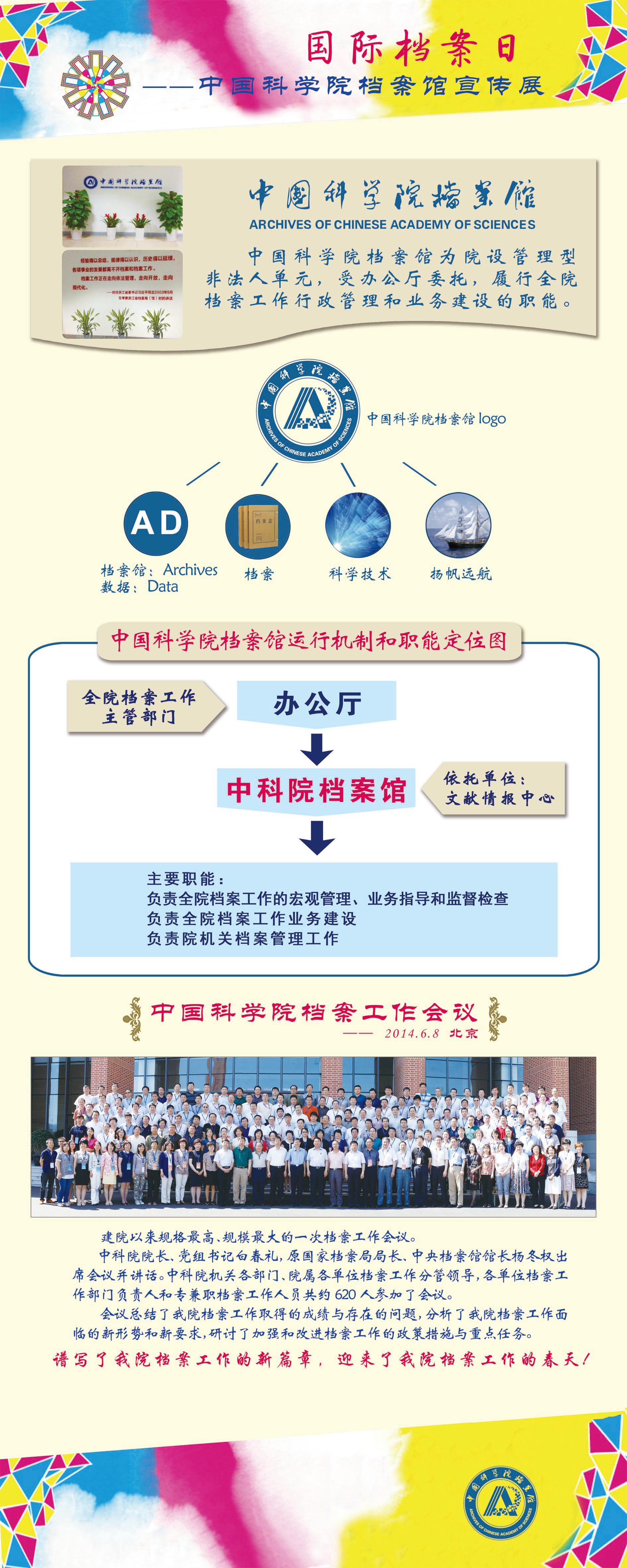 6月9日是“国际档案日”。为宣传档案与中科院档案工作,提升全院档案意识,根据《国家档案局关于开展2016年“国际档案日”宣传活动的通知》要求,中国科学院档案馆统一制作了档案宣传展板。光电所于6月举办“国际档案日——中国科学院档案馆宣传展”。