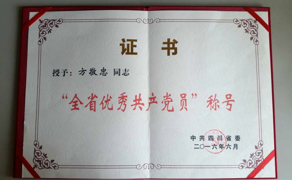 6月30日,四川省委召开庆祝中国共产党成立95周年大会。会议共表彰了全省200名优秀共产党员、100名优秀党务工作者和200个先进基层党组织。我所研究员、副总工程师方敬忠同志获得“四川省优秀共产党员”荣誉称号。