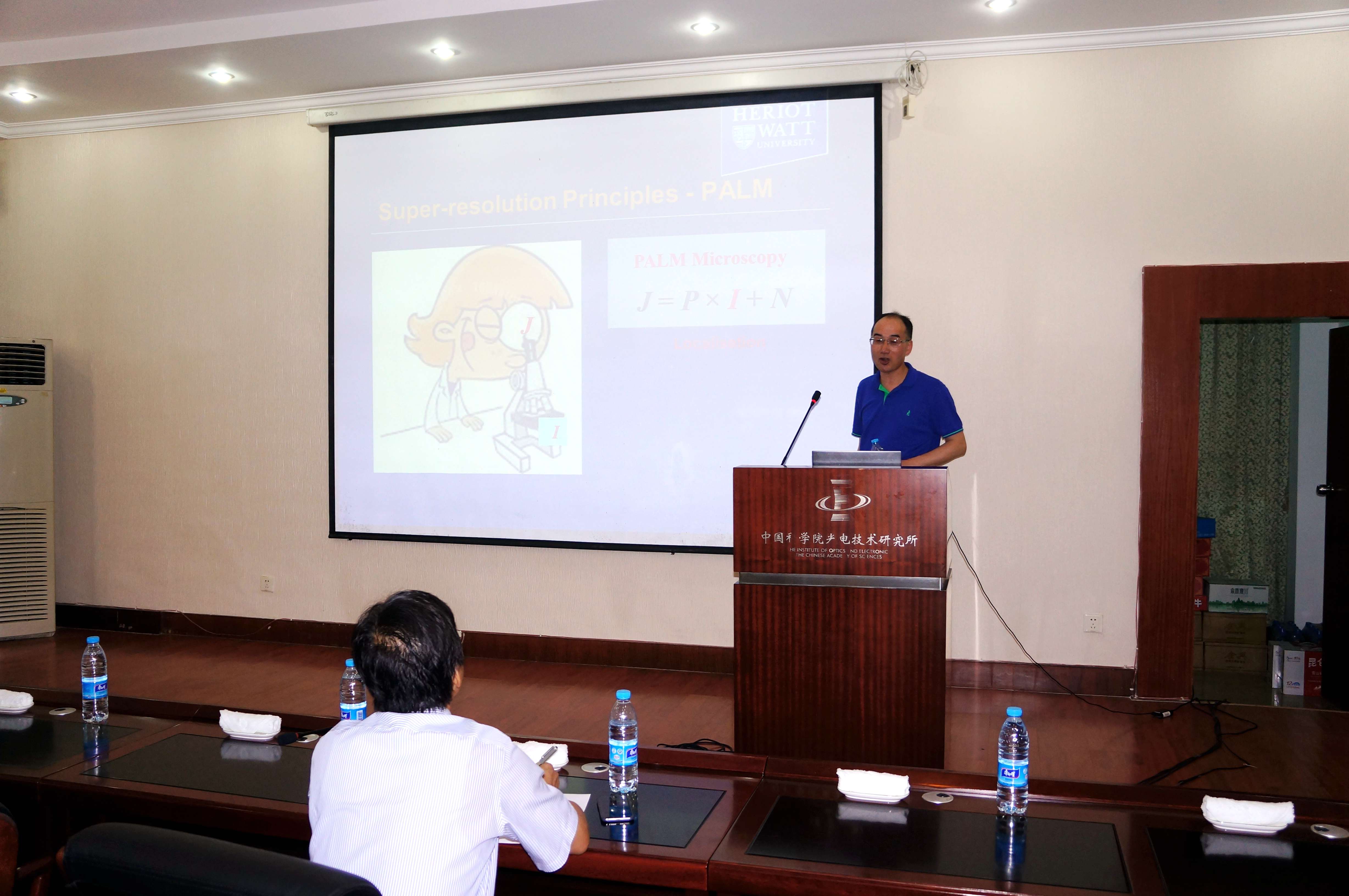 9月6日上午,来自英国Heriot-Watt大学的路伟平教授受邀来到光电所开展学科交流,在光电所会议中心做了题目为“Super-resolution imaging and its applications in biological and biomedical researches”的学术报告,并在会后和在座的老师同学进行了热烈的交流讨论。光电所科研人员和学生约80多人参加了此次学术报告。会议由副所长饶长辉研究员主持。