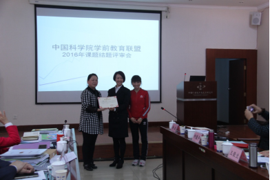 随后的评审会上,各课题组代表汇报了课题研究的相关成果。评审组对各课题进行了点评并提问,课题组完成答辩。刘敏代表专家组宣读评审意见。她表示,本次参研课题体现了各园特色,研究路径清晰,过程性资料详实,成果较为丰富,效果较为明显,均达到预期研究成效,同意结题。经评审合议,中科院幼儿园总园与光电所幼儿园课题并列一等奖。翟秋翌为各获奖幼儿园颁发了结题证书,刘敏为获奖幼儿园颁发了荣誉证书。
