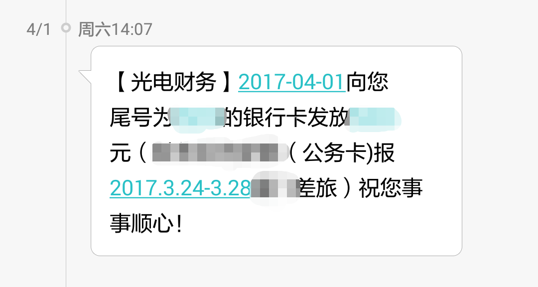 财务处针对每一位职工的经费报销业务,将报销信息包括报销时间、报销金额、发生报销业务明细以及代发上卡种类(工资卡或者公务卡)及时发送至每一位职工的预留手机号,此举极大地方便了大家及时准确了解本人报销代发上卡的详情。