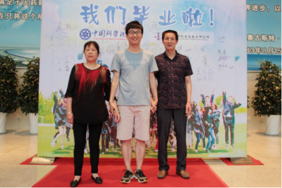 晚会以毕业生走红毯的形式开场。这个特别的毕业仪式是本次毕业晚会的创新之处,并且得到了毕业生们的积极参与,其中30位毕业生组成17组或携伴侣、或携父母、或携子女、或与室友好朋友徐徐走过红毯,在签名墙上留下名字并拍照留念。主持人对每组成员进行了简单的采访,整个过程通过场外摄影师同步直播到内场。其中博士毕业生孔林牵着远道而来的双亲走过红毯的情景尤为让人动容,在采访的过程中各位毕业生们不仅表达了对身边人的祝福,同时也表达了光电所的不舍和感激。