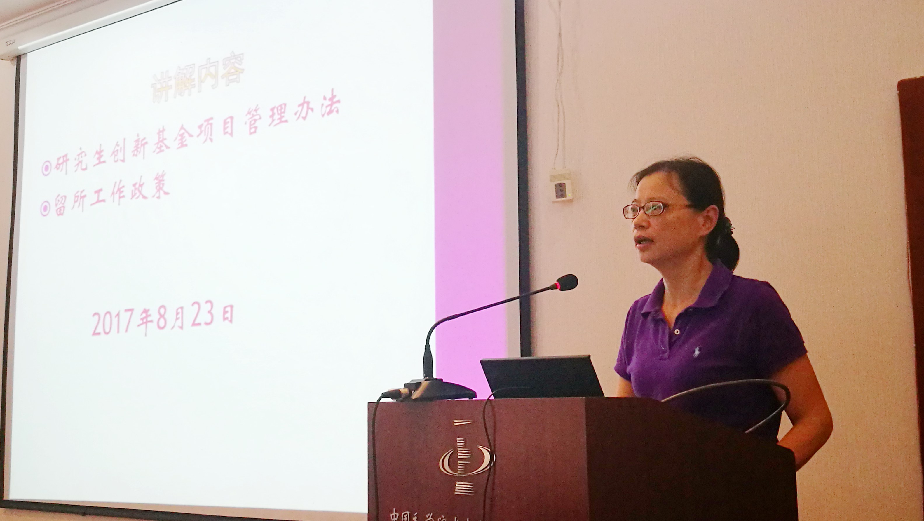 唐小萍向同学们宣贯了光电所面向研究生制定的激励政策以及相关留所政策。研究生创新基金项目为研究生开拓创新思维、实现创新梦想而专门设立,具有很大开放性和包容性。她详细介绍了研究生创新基金项目和研究生创新人才奖申报流程,并鼓励大家在平时的学习过程中积极思考、善于积累,在光电所这个平台上充分展示自己的才华。