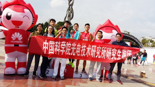 8时整,雄壮的《中华人民共和国国歌》奏响,参赛队员高唱国歌,奋勇向前。在业余与专业选手“万马奔腾”的队伍中,在这被国内外参赛选手誉为“中国最美马拉松赛道”上,在沿途观众热情的助威声中,光电所研究生跑团的3位全马、9位半马、4位迷你马选手互相鼓励,彼此帮助,顽强拼搏,以坚韧意志挑战自我生理心理极限,尽情展现光电学子“身心健康、青春飞扬”的风采,以激情与汗水响应着党的十九大提出的“全民健身让生活更美”的号召,实践了马拉松“挑战自我、超越极限、坚韧不拔、永不放弃”精神。最后,全体参赛研究生在规定时间内完成比赛,半马选手取得非常优秀的比赛成绩。