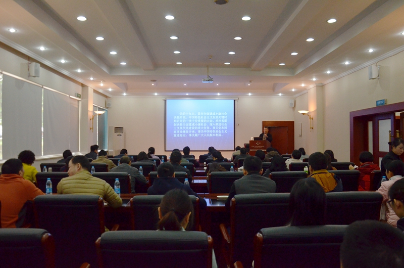 11月21日,光电所举办学习贯彻党的十九大精神专题辅导报告会。会议邀请原中共成都市委党校法学教研部主任、教授,现任四川高校培训中心、四川大学、西南财经大学客座教授宁金和为全所党务干部进行十九大精神解读。全所党务干部近70余人聆听了此次报告会。会议由党委副书记、纪委书记、副所长魏全忠主持。党委书记杨虎出席报告会。