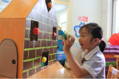 它由废旧纸箱拼成城堡,在废旧纸箱上刻镂出窗户和城墙,并用颜料给城堡木板涂上彩色构成。它将科学领域与其他领域相结合(如数学领域、建构领域等),促进幼儿的全面发展。