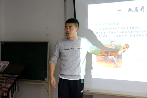 最后是2016级硕士、研究生会体育部长何德伟硕士分享的“跑马那些事——我所理解的42.195KM”。他从马拉松的历史、马拉松精神与情怀,到自己的几次跑马经历,再到跑步基本知识、跑马实战技巧等娓娓道来。特别分享了自己的“首马”——大连马拉松经历,他动情地说,每个人的青春都有着不同的故事,但首马对于每一位马拉松爱好者而言,都有着难忘的回忆,也许闭上眼所能想到的,不只是在赛道上一次次奋力的挣扎和绝望时的呐喊,而更多的是,在那些驻足过的地方,曾留下过我们奔跑的步伐!